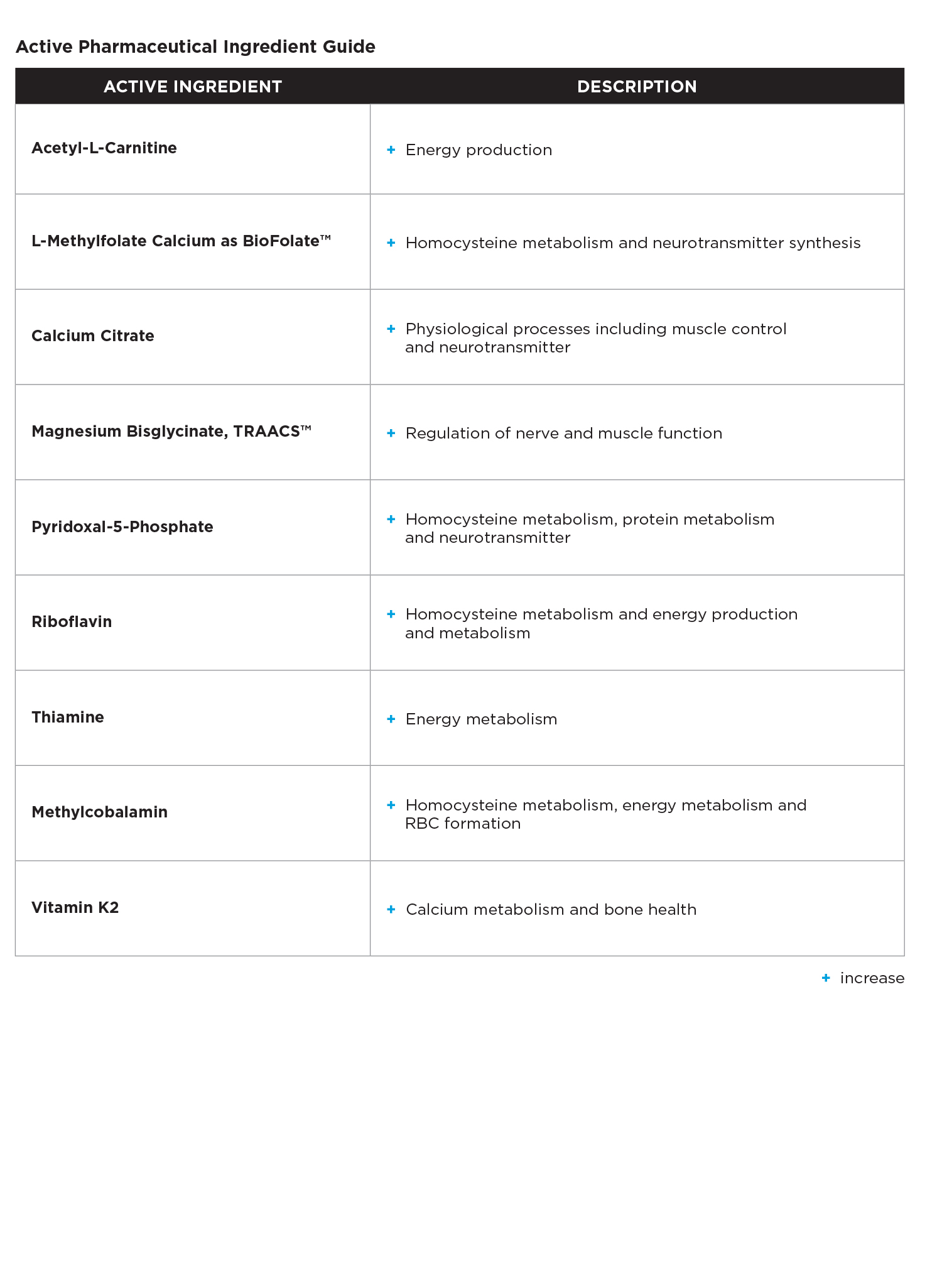 | L-methylfolate calcium as Biofolate® | 1 mg |